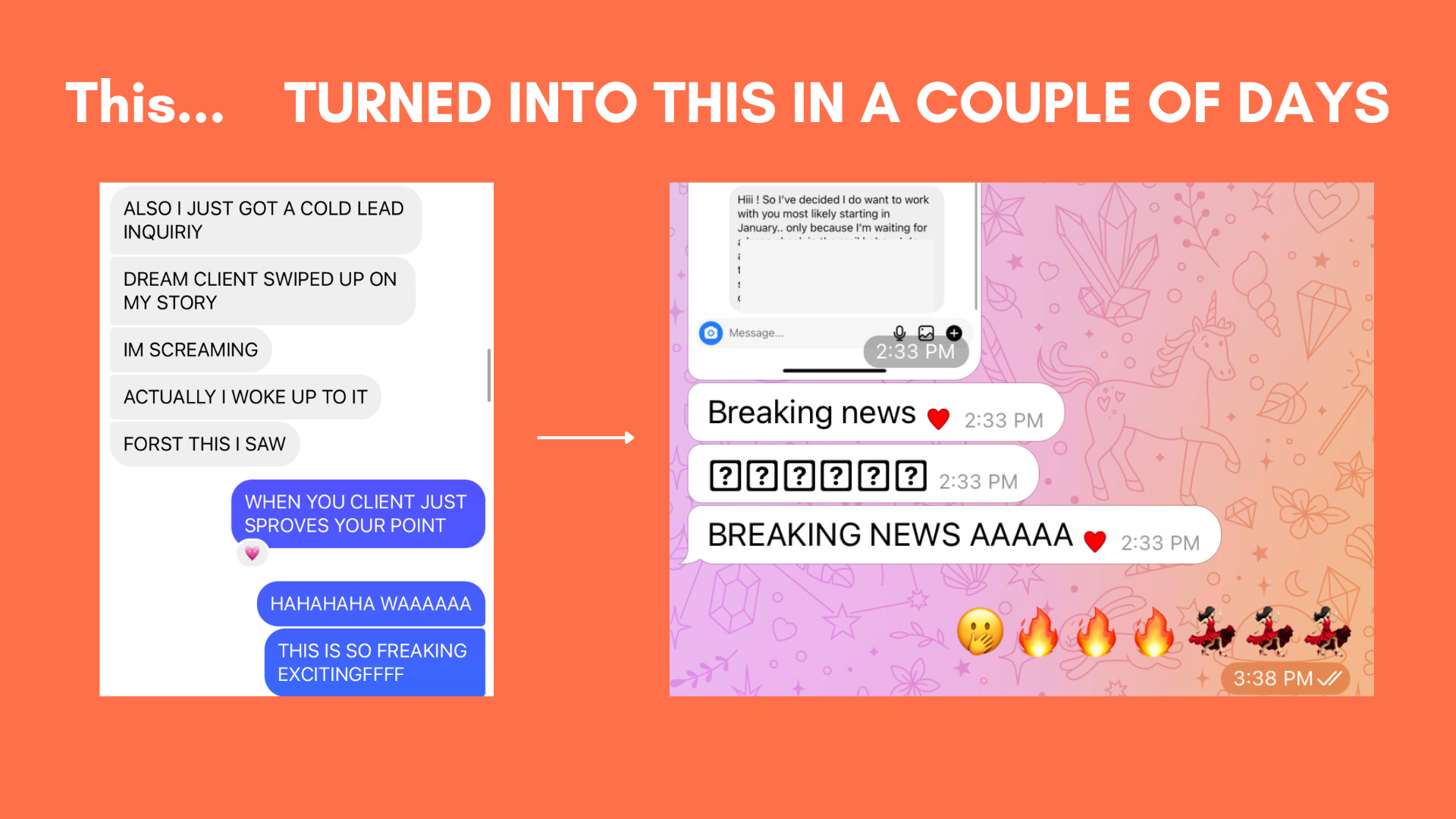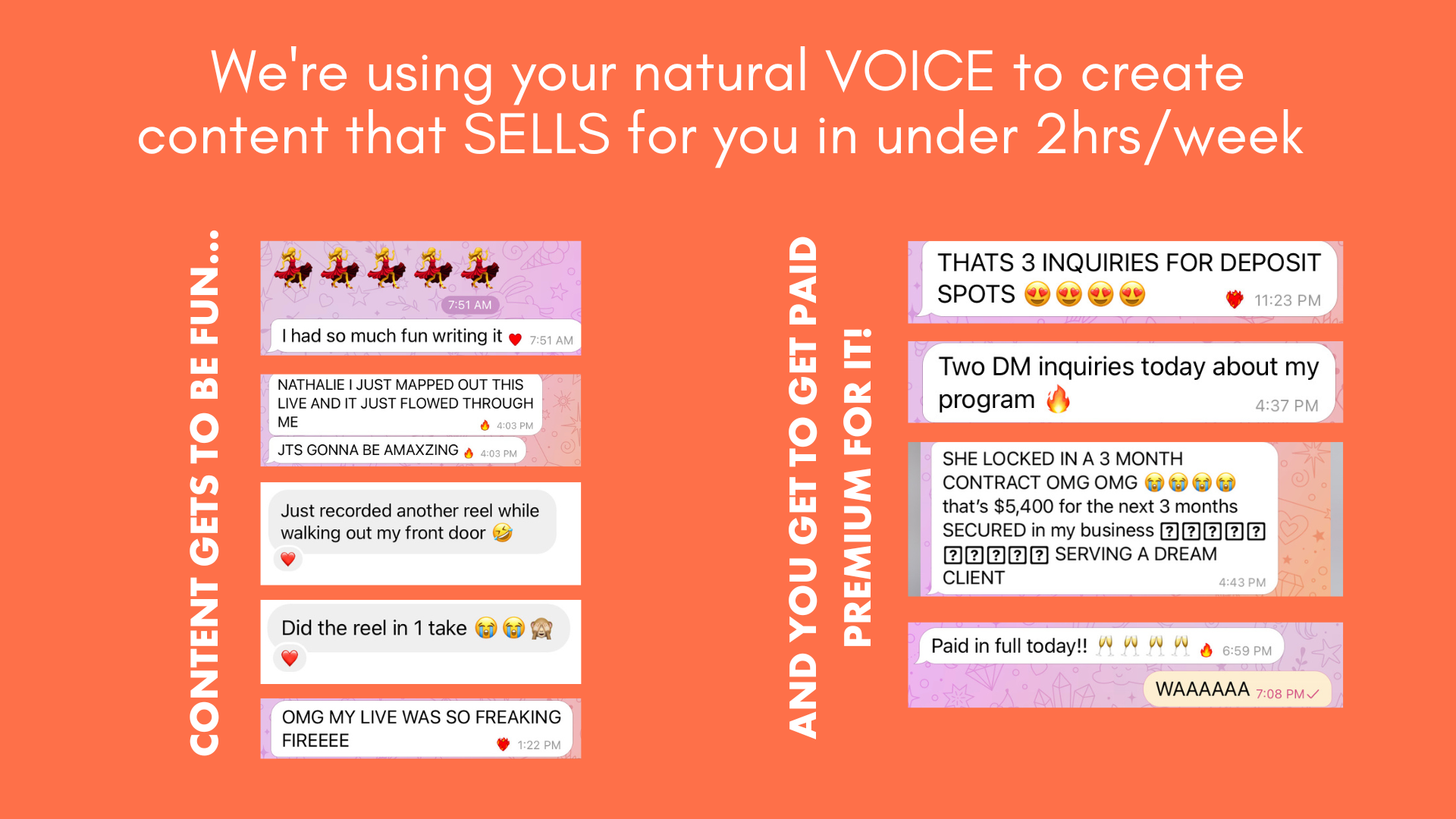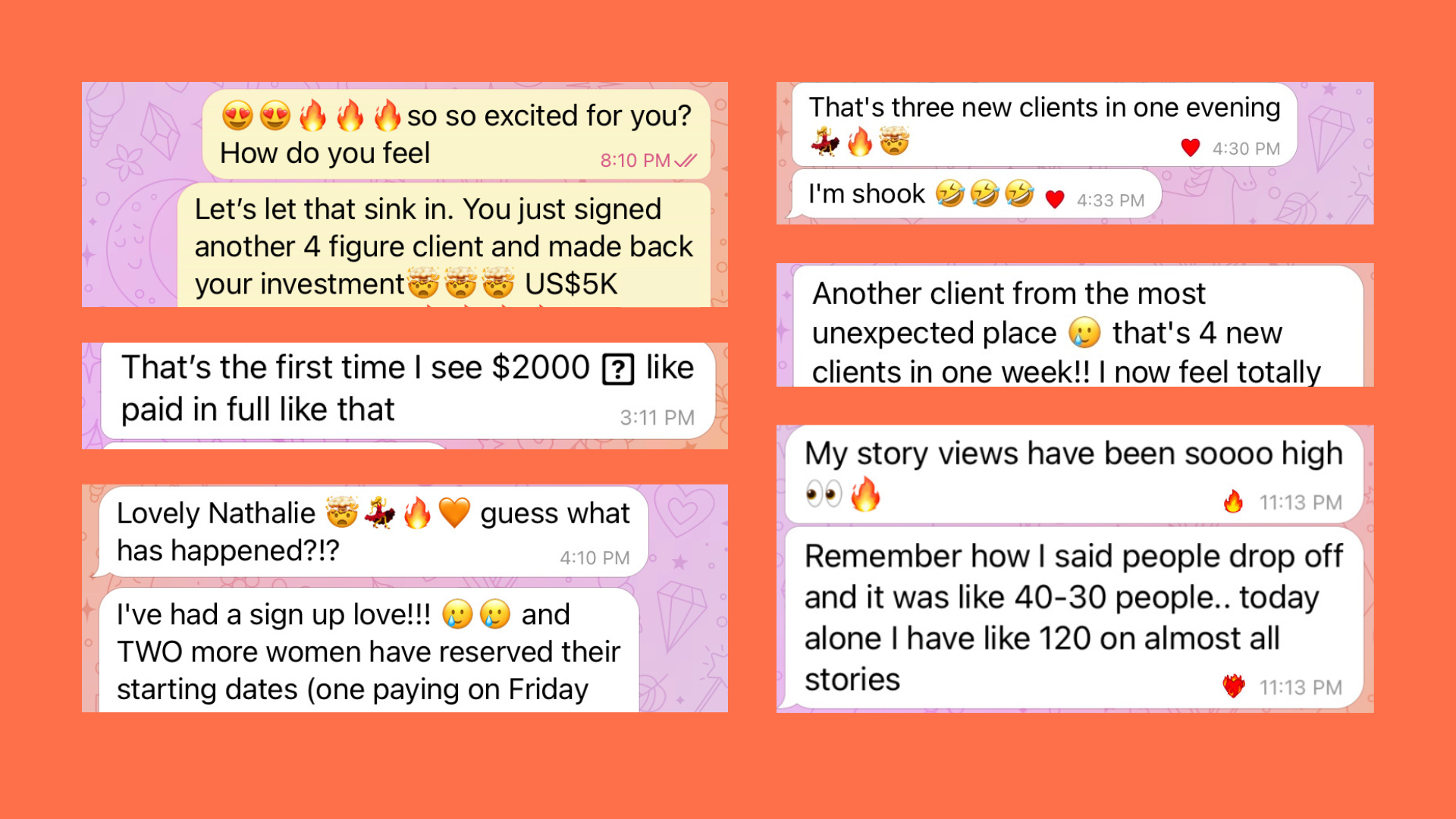 I have supported from newer coaches, to multiple 5 figure and 6 figure business owners in tripling their Premium Sales & FULLY booking out their High Ticket offers (at their Highest rates EVER).. directly through captivating messaging and energetic shifts.