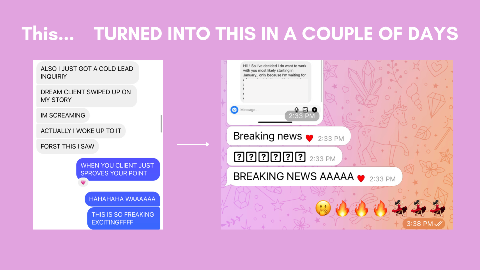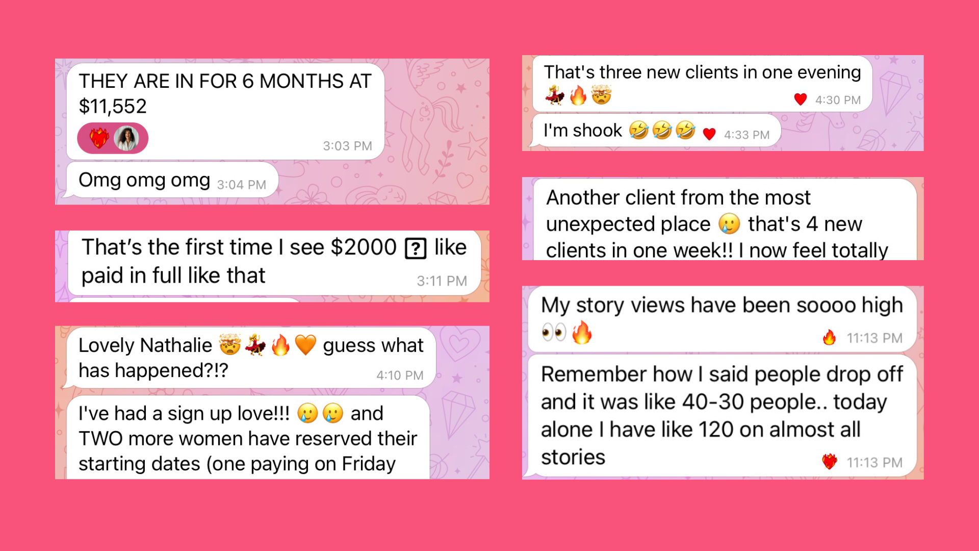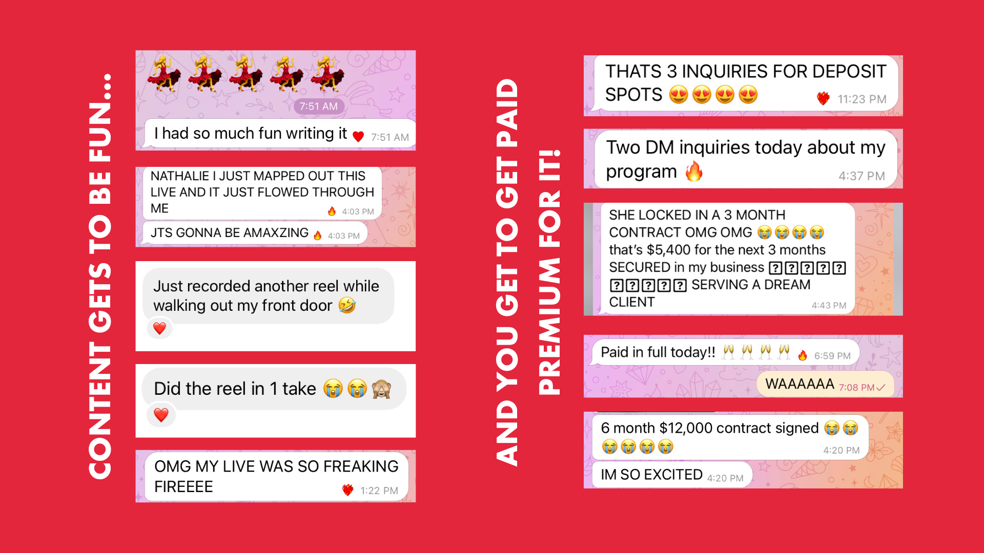 After going through the program, I've had multiple DM's from potential clients based solely on my content. I had one person binge my content and inquire about my program in one day.