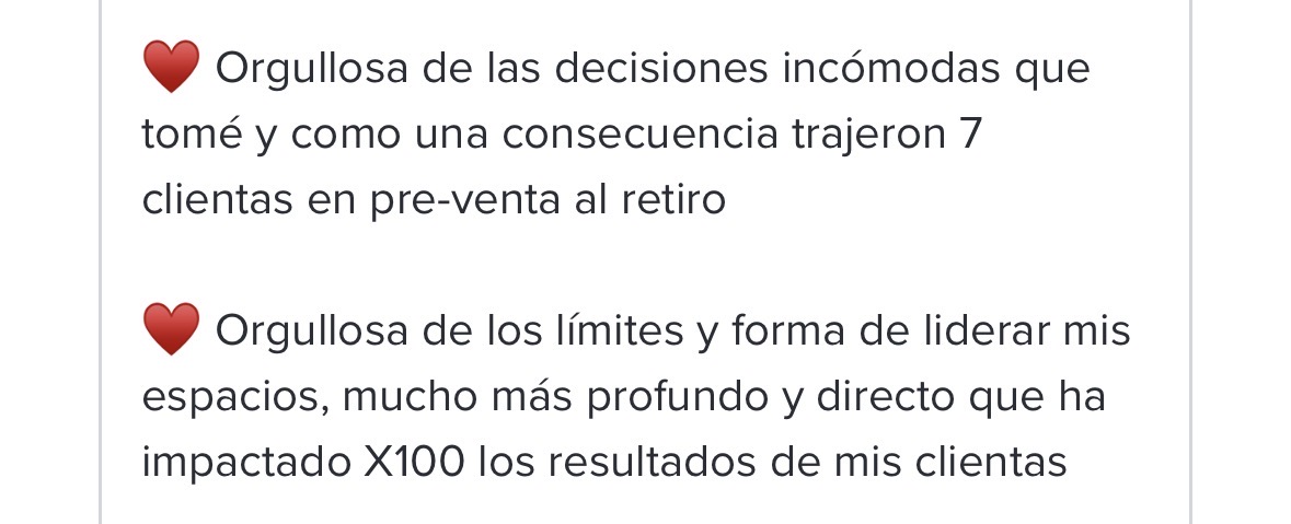 – Sentirte confiada que tu curriculum y entrega están al nivel del precio que estás cobrando y apoyan a tus clientes a crear aún mejores resultados sin importar que estén en sesión contigo o no.