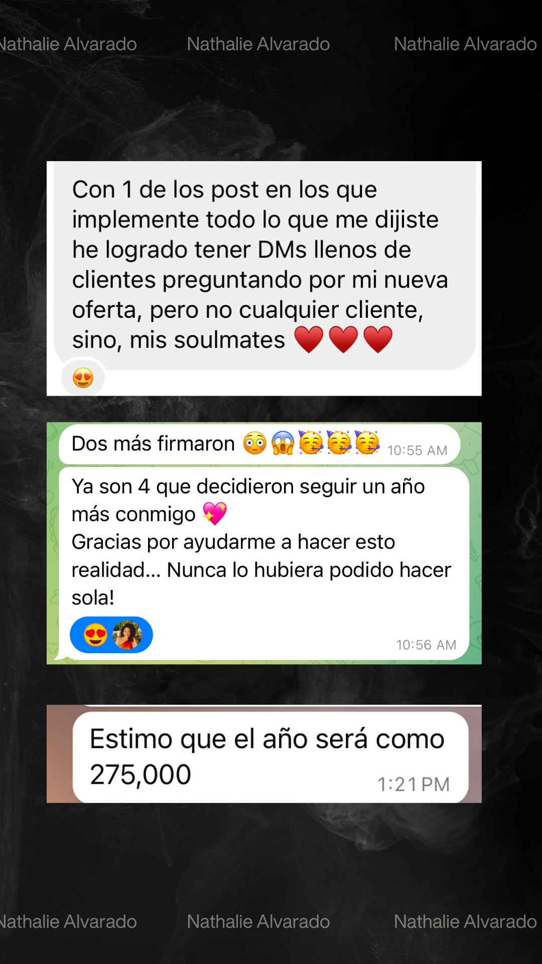 DISCLAIMER IMPORTANTE: Nathalie Alvarado y Gniappe no pueden ni dan ninguna garantía sobre resultados o ganancias con nuestra información, cursos, programas, masterminds, coaching, planes, herramientas o estrategias.